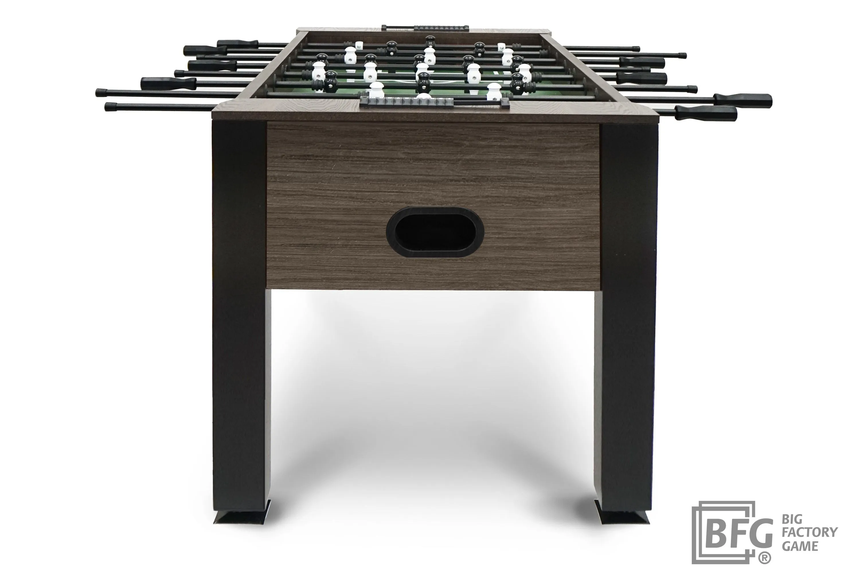 Стол оборудован профессиональными штангами и стилизованными фигурками игроков, выполненными из долговечных и прочных материалов. Ключевым преимуществом модели является материал - стол изготовлен из натурального массива древесины с применением шпона ценных пород.