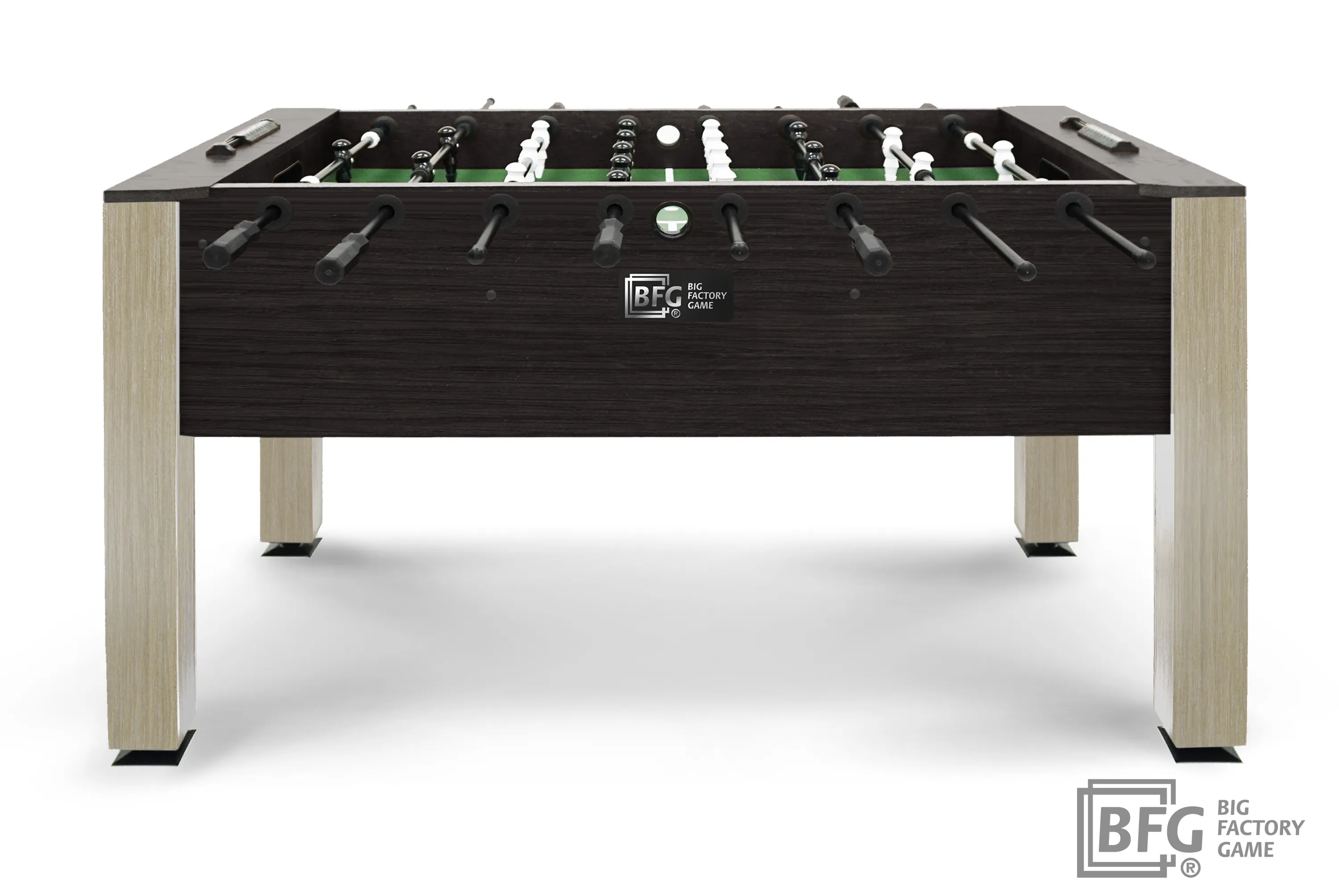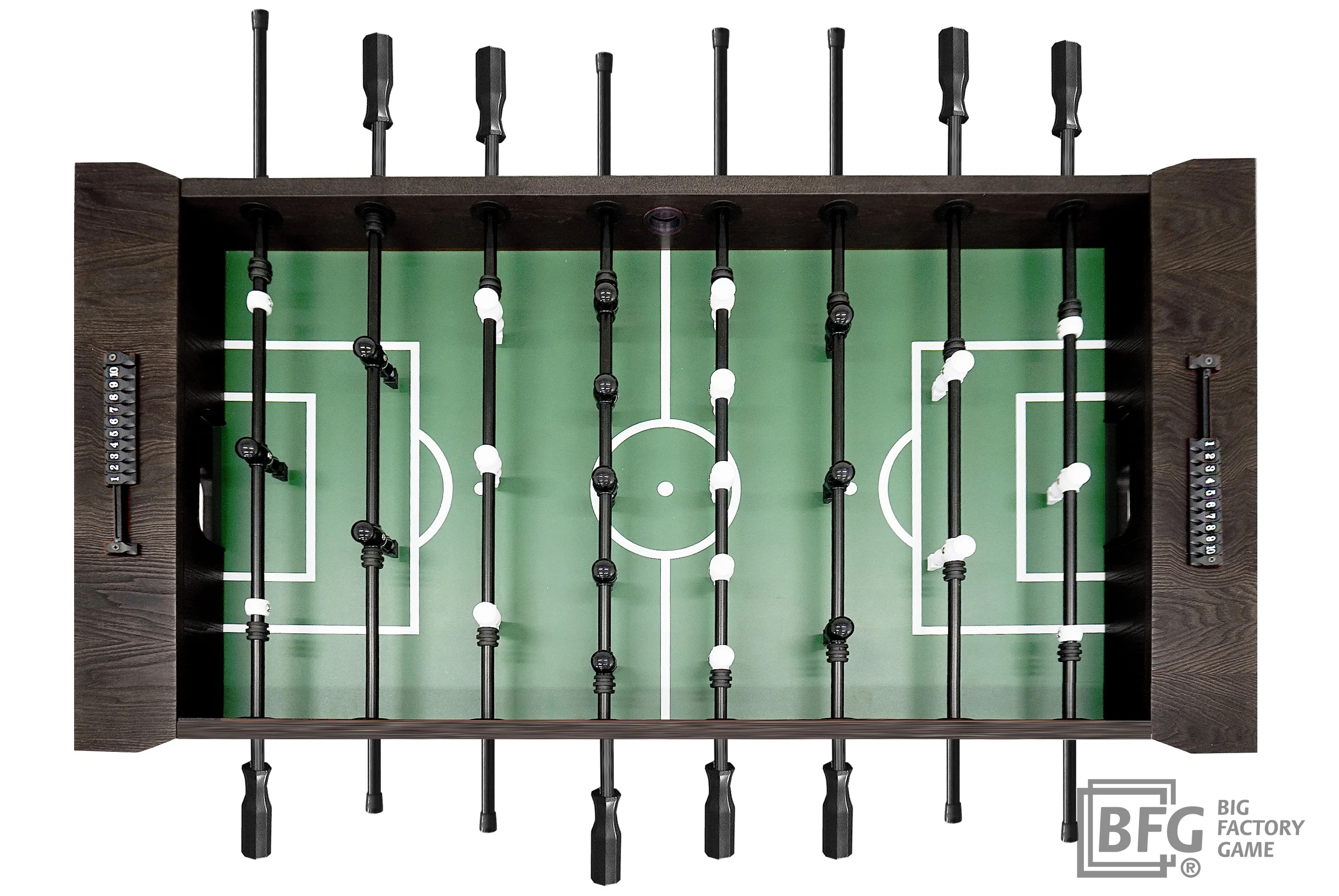 Стол оборудован профессиональными штангами и стилизованными фигурками игроков, выполненными из долговечных и прочных материалов. Ключевым преимуществом модели является материал - стол изготовлен из натурального массива древесины с применением шпона ценных пород.