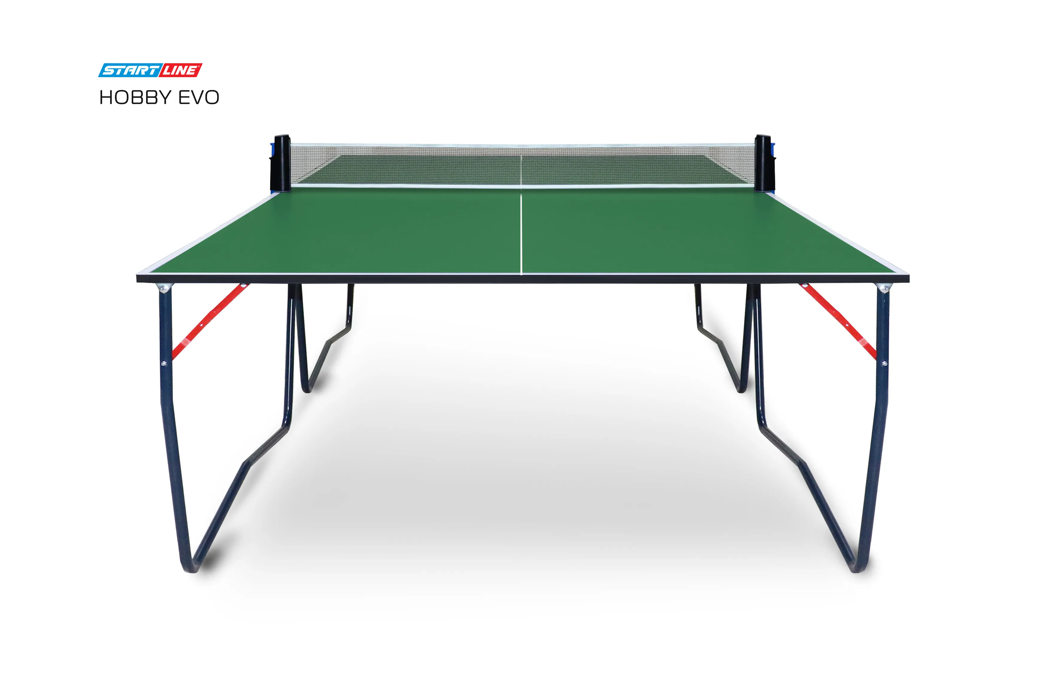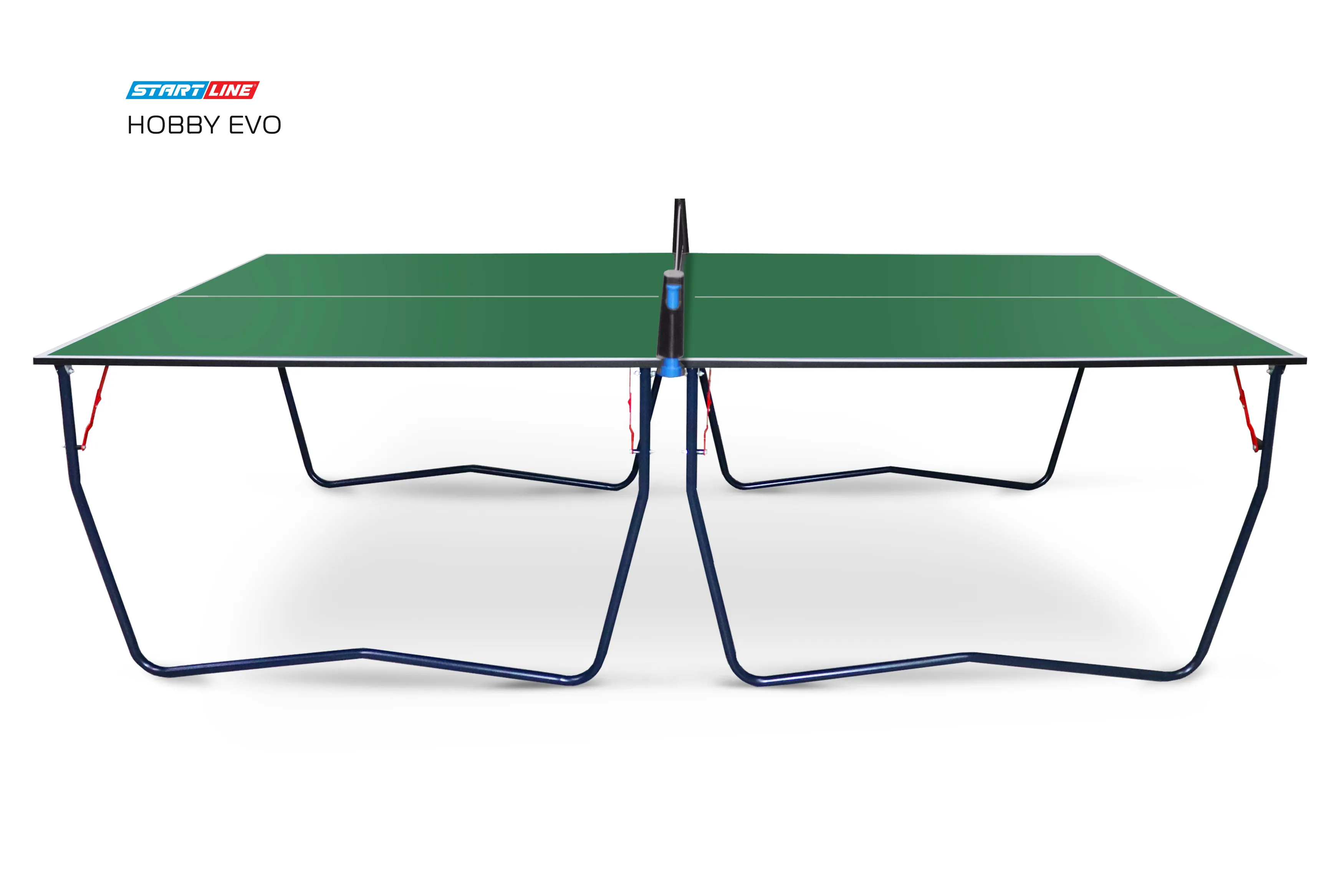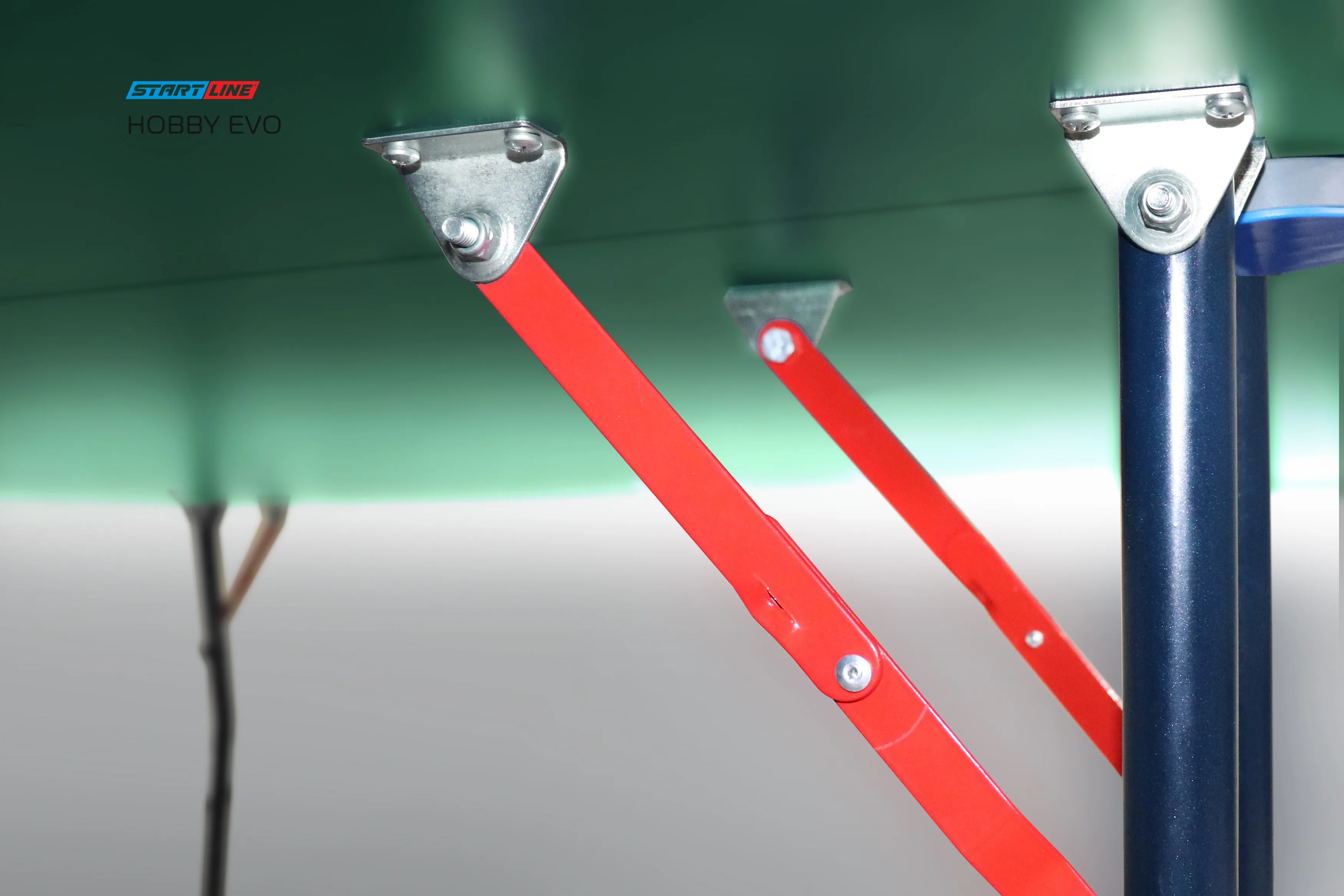 Hobby Evo blue — любительский теннисный стол для дома и офиса. Модель облегченного конструктива и ультрасовременного дизайна. Ноги стола специальной формы, с характерным изгибом. Раскосы ярко-красного цвета с надежной фиксацией обеспечивают устойчивость конструкции в разложенном виде и во время игры. Модель легко устанавливается и очень компактна при хранении.